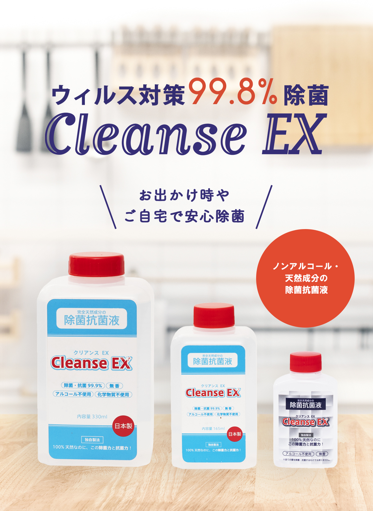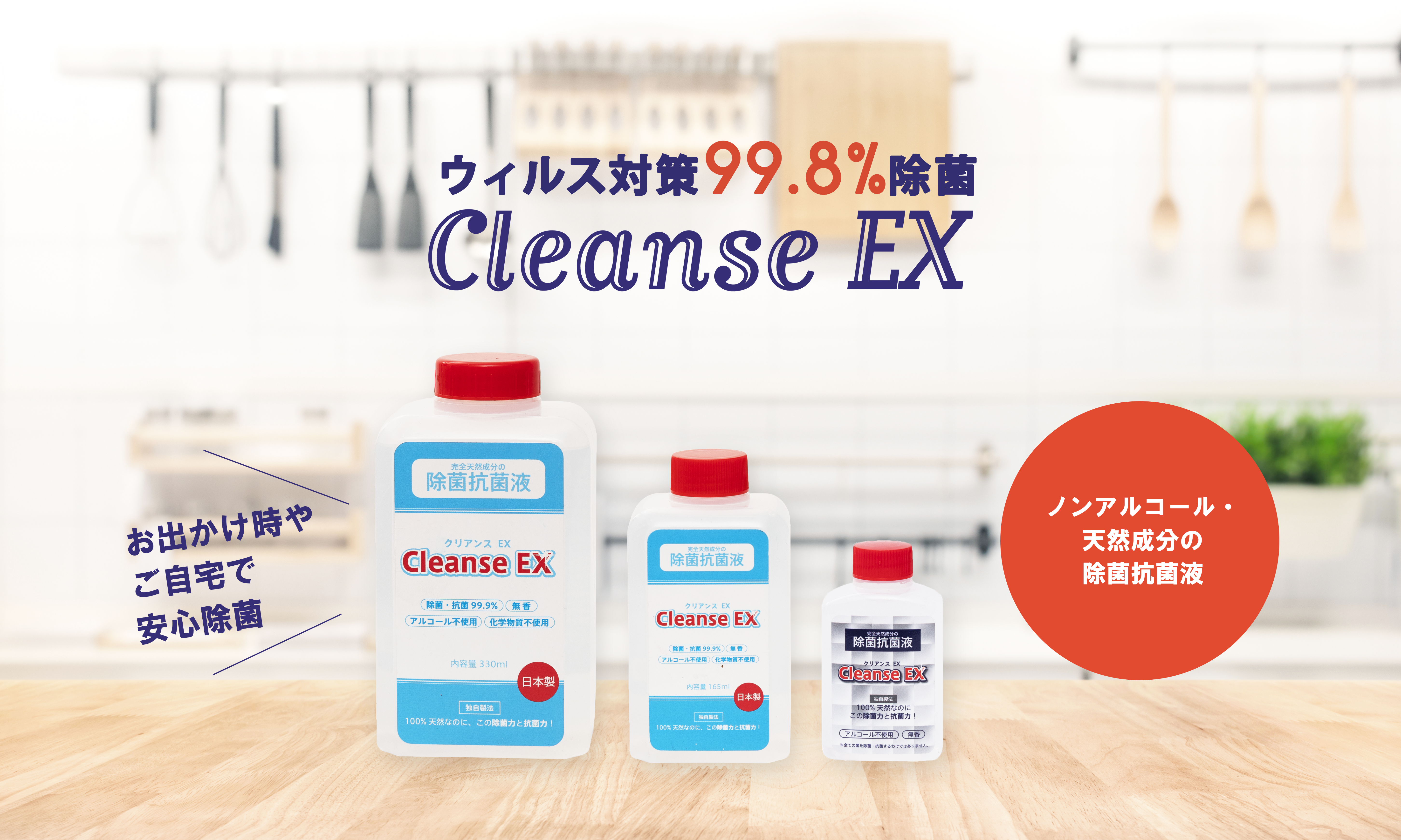 クリアンスEXはアルコール不使用・塩素不使用・無刺激です。肌についても安全ですので安心してお使いください。